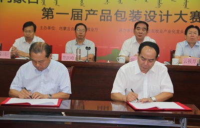 201487日,首屆內(nèi)蒙古自治區(qū)農(nóng)畜產(chǎn)品包裝設計競賽成果與2014(第二屆)內(nèi)蒙古“名優(yōu)特”農(nóng)畜產(chǎn)品認定成果發(fā)布會在國際會展中心召開,自治區(qū)農(nóng)牧業(yè)廳廳長郭健、副廳長云挨厚、副廳長賈躍峰、辦公室主任侯雁冰及內(nèi)蒙古農(nóng)牧業(yè)產(chǎn)業(yè)化龍頭企業(yè)協(xié)會會長張世斌、執(zhí)行會長林永亮,招商銀行呼和浩特分行行長曲亮、內(nèi)蒙古銀行副行長靳生榮、中國郵儲銀行內(nèi)蒙古分行副行長鞏連華、中國銀行內(nèi)蒙古分行中小企業(yè)部總經(jīng)理劉揚出席了此次會議,農(nóng)牧業(yè)廳產(chǎn)業(yè)化處處長王補在主持會議。