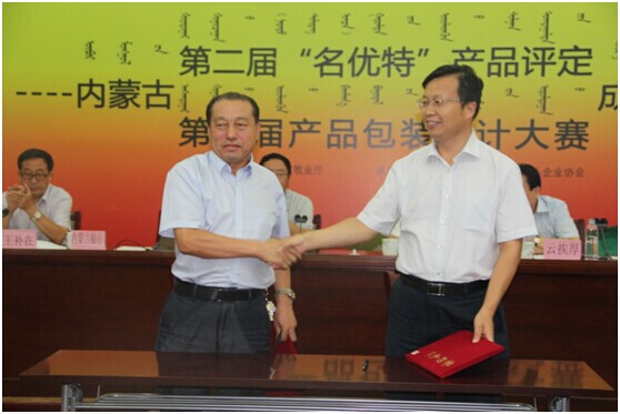 隨后,農(nóng)牧業(yè)廳云挨厚副廳長與內(nèi)蒙古農(nóng)牧業(yè)產(chǎn)業(yè)化龍頭企業(yè)協(xié)會會長張世斌分別公布了首屆內(nèi)蒙古自治區(qū)農(nóng)畜產(chǎn)品包裝設計競賽獲獎名單與2014(第二屆)內(nèi)蒙古“名優(yōu)特”農(nóng)畜產(chǎn)品名單,出席會議領導向獲獎企業(yè)頒發(fā)了獎杯及證書。