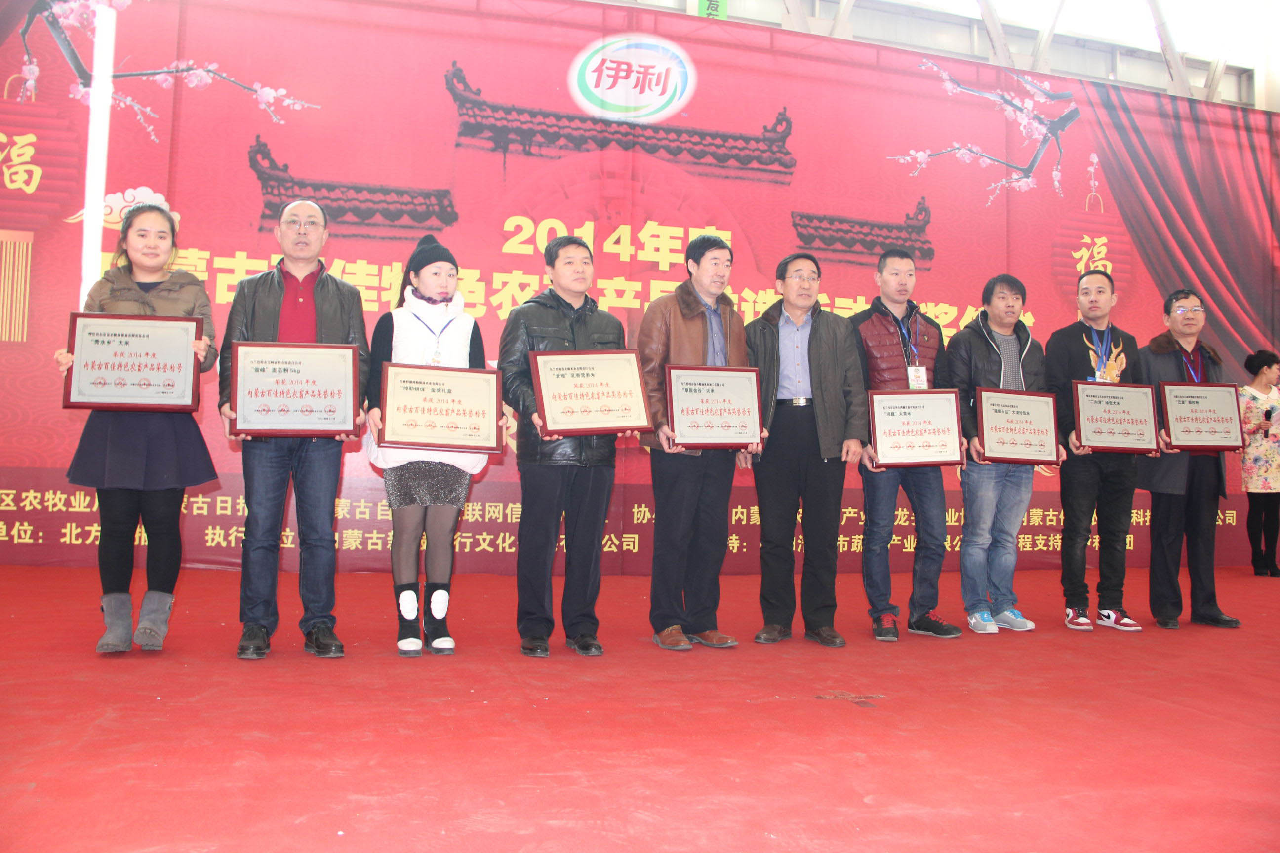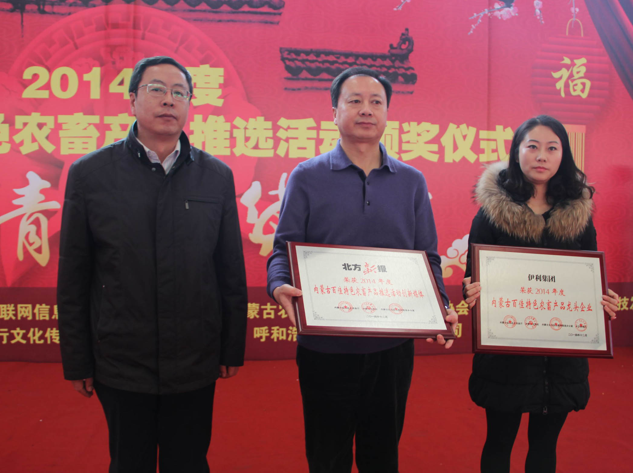 26日,由自治區(qū)農(nóng)牧業(yè)廳、內(nèi)蒙古日報(bào)社、自治區(qū)網(wǎng)信辦主辦,內(nèi)蒙古農(nóng)牧業(yè)產(chǎn)業(yè)化龍頭企業(yè)協(xié)會、內(nèi)蒙古保全農(nóng)產(chǎn)品科技發(fā)展有限公司協(xié)辦,北方新報(bào)承辦的“內(nèi)蒙古百佳特色農(nóng)畜產(chǎn)品”推選活動(dòng)頒獎(jiǎng)儀式暨2015“青城年貨大集”在呼和浩特市保全莊農(nóng)貿(mào)市場2號廳正式開幕。自治區(qū)農(nóng)牧業(yè)廳副廳長賈躍峰、內(nèi)蒙古日報(bào)社黨委委員、副總編輯孫亞輝、內(nèi)蒙古農(nóng)牧業(yè)廳產(chǎn)業(yè)化處處長王補(bǔ)在、北方新報(bào)社總編輯李德斌、內(nèi)蒙古農(nóng)牧業(yè)產(chǎn)業(yè)化龍頭企業(yè)協(xié)會執(zhí)行會長林永亮等出席頒獎(jiǎng)儀式,賈躍峰副廳長在頒獎(jiǎng)儀式上致辭。此次評選活動(dòng)共112家農(nóng)牧業(yè)企業(yè)的120件產(chǎn)品被評選為“內(nèi)蒙古百佳特色農(nóng)畜產(chǎn)品”。獲獎(jiǎng)企業(yè)參加了此次2015“青城年貨大集”,展出了糧油、畜、禽、魚、蛋、奶、蔬菜、水果等多種特色產(chǎn)品,是首府春節(jié)前夕的一次大型展示、展銷、采購活動(dòng)。