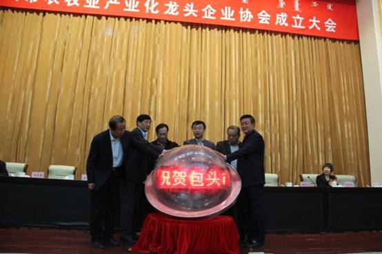 王雨峰副巡視員、烏恩孟和副主任、任福副市長、楊澤繁副主席、林永亮執(zhí)行會長、余佳榮會長進(jìn)行啟動儀式,祝賀包頭市農(nóng)牧業(yè)產(chǎn)業(yè)化龍頭企業(yè)協(xié)會成立。