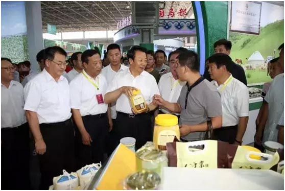 隨后,自治區(qū)黨委書記王君,自治區(qū)政協(xié)主席任亞平,自治區(qū)黨委常委、呼和浩特市委書記那順孟和,自治區(qū)副主席王玉明等領(lǐng)導在市委書記何永林,市委副書記、市長段志強的陪同下,參觀了12個盟市和部分企業(yè)的展區(qū)。在參觀過程中,王君書記強調(diào)我們要積極適應(yīng)和引領(lǐng)經(jīng)濟發(fā)展新常態(tài),毫不放松地抓好農(nóng)牧業(yè)生產(chǎn),打好產(chǎn)品優(yōu)勢牌,走好企業(yè)特色路,不斷培育產(chǎn)業(yè)新的增長點。并要抓住互聯(lián)網(wǎng)時代信息與各類產(chǎn)業(yè)融合發(fā)展的新機遇,充分利用好互聯(lián)網(wǎng)+的新模式,為我區(qū)綠色農(nóng)畜產(chǎn)品生產(chǎn)加工輸出插上信息化的翅膀。