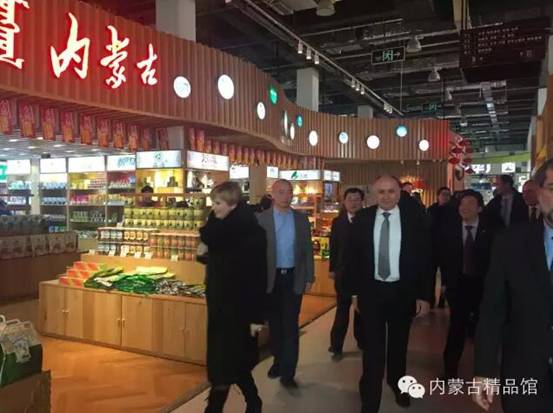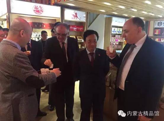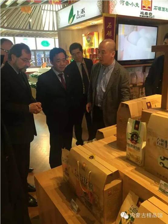 期間屈冬玉副部長(zhǎng)與中東歐國(guó)家駐華使館大使、外交部和質(zhì)檢總局等代表參觀(guān)內(nèi)蒙古精品館。
