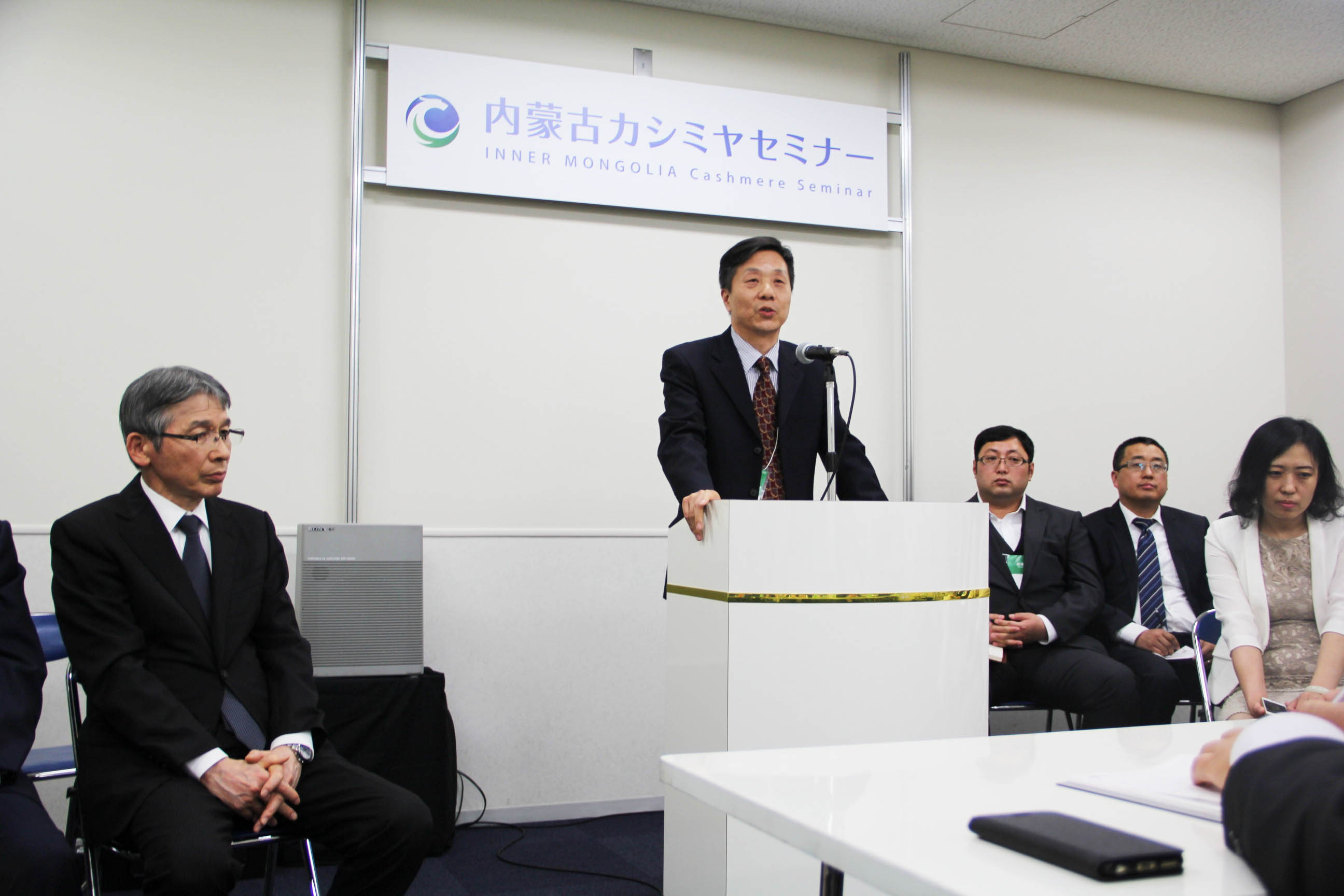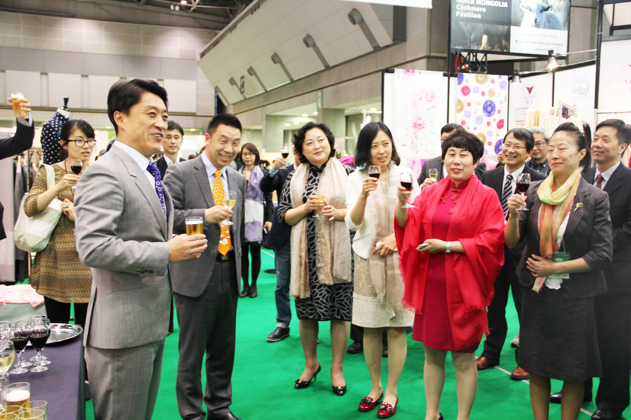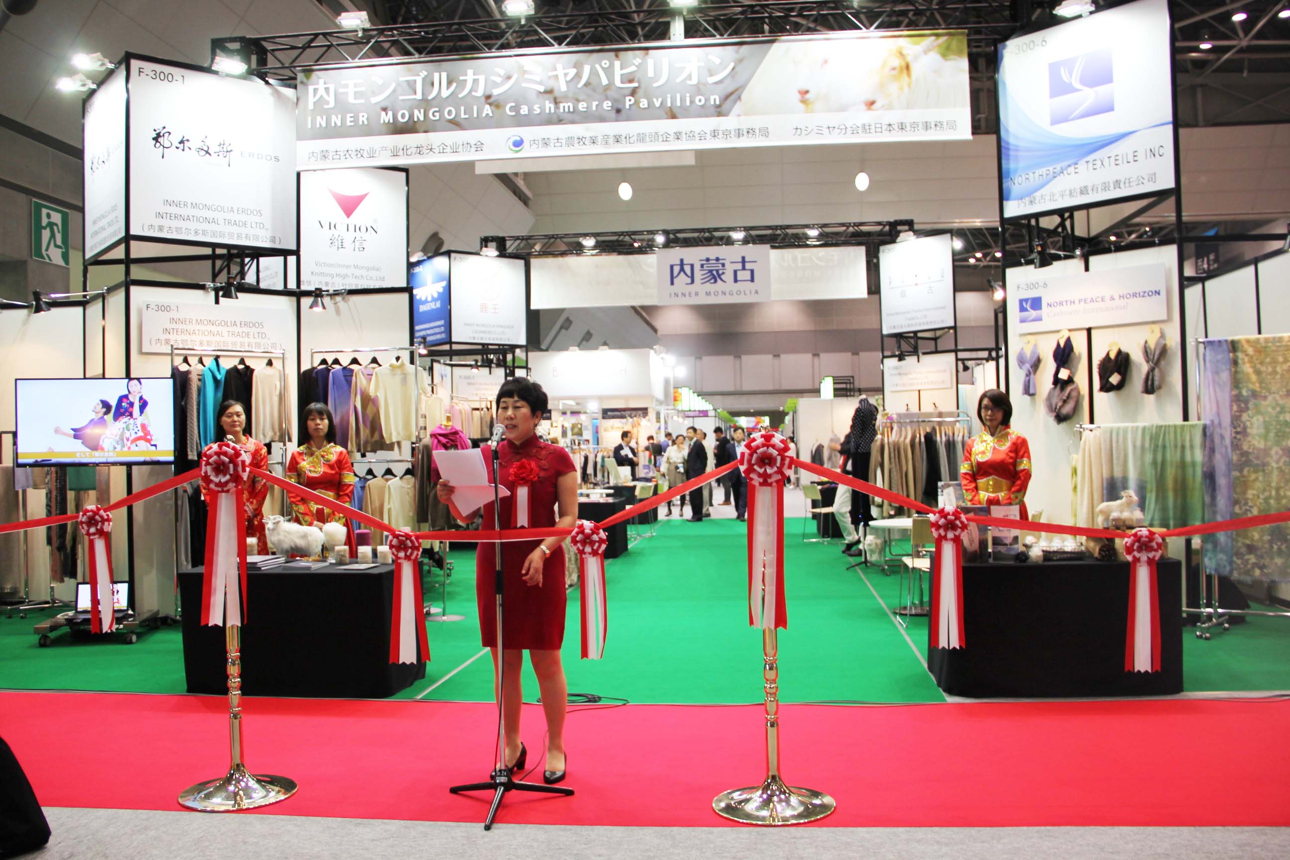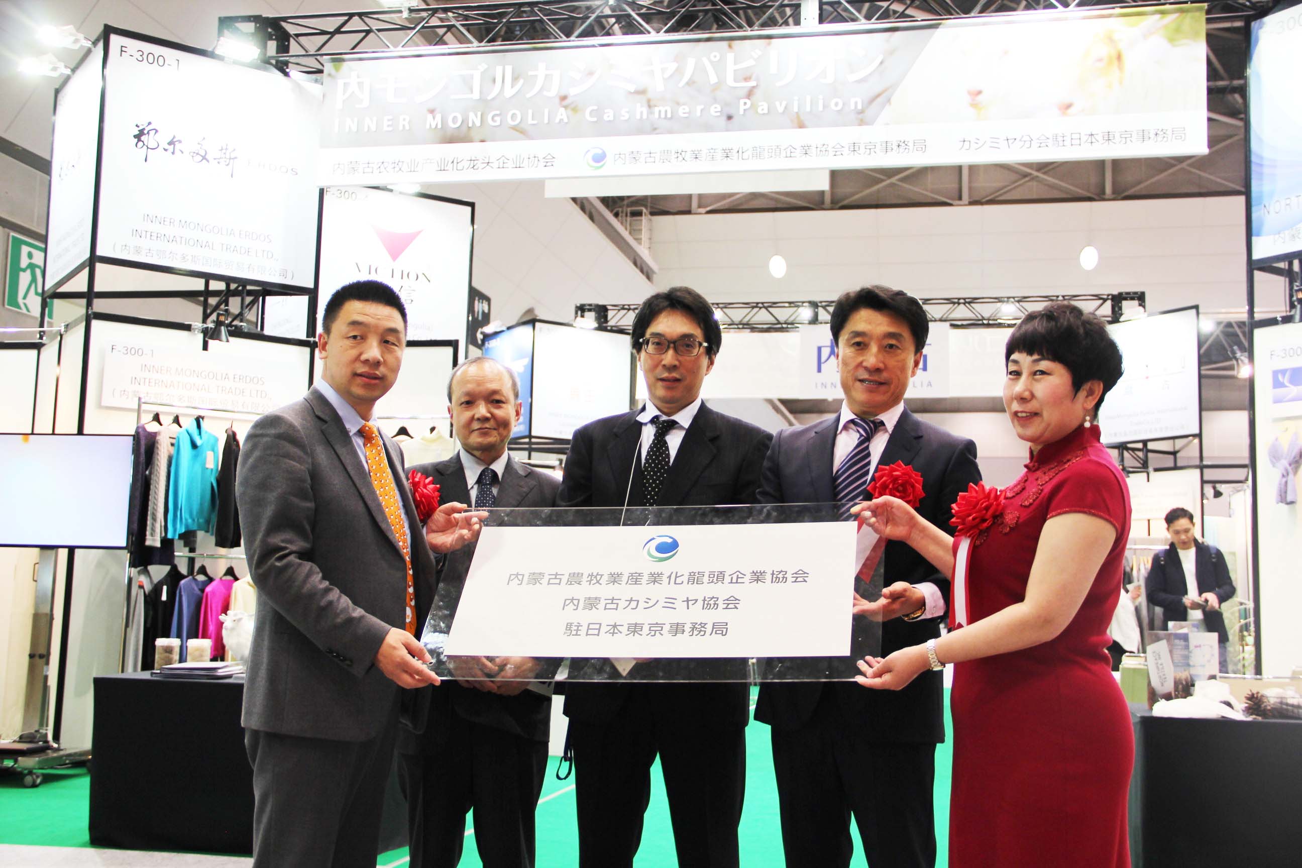2016426日上午11時(shí),在內(nèi)蒙古羊絨展區(qū)前,舉行了盛大的開(kāi)業(yè)剪彩儀式,內(nèi)蒙古自治農(nóng)牧業(yè)廳產(chǎn)業(yè)化處副處長(zhǎng)郟金梅、內(nèi)蒙古農(nóng)牧產(chǎn)業(yè)化龍頭企業(yè)協(xié)會(huì)會(huì)長(zhǎng)閆樹(shù)春、內(nèi)蒙古農(nóng)牧產(chǎn)業(yè)化龍頭企業(yè)協(xié)會(huì)羊絨產(chǎn)業(yè)分會(huì)會(huì)長(zhǎng)王風(fēng)之出席剪彩儀式,并分別就政府支持、協(xié)會(huì)服務(wù)和企業(yè)自律發(fā)展等幾方面做了精彩致辭。郟金梅副處長(zhǎng)表示,希望通過(guò)此次活動(dòng),使得社會(huì)各界代表能夠贏得機(jī)遇、拓展空間,取得豐碩的成果,同時(shí)真誠(chéng)盼望各方來(lái)賓、新老朋友能夠進(jìn)一步了解內(nèi)蒙古羊絨,認(rèn)識(shí)內(nèi)蒙古羊絨,并以此為契機(jī),加強(qiáng)內(nèi)蒙古羊絨界與日本企業(yè)的合作,攜手發(fā)展,實(shí)現(xiàn)共贏,共創(chuàng)輝煌。閆樹(shù)春會(huì)長(zhǎng)在致辭中講到,我們此行不僅是要展示內(nèi)蒙古羊絨原料優(yōu)勢(shì)地位和行業(yè)加工的專業(yè)性,更希望能充分利用各個(gè)平臺(tái)廣泛交流,探討合作途徑的契合點(diǎn),推動(dòng)兩國(guó)羊絨行業(yè)多方共贏,共同提升全球市場(chǎng)對(duì)羊絨產(chǎn)品的認(rèn)知度,希望我們的羊絨企業(yè)能團(tuán)結(jié)一致,實(shí)現(xiàn)羊絨產(chǎn)業(yè)的可持續(xù)發(fā)展。羊絨產(chǎn)業(yè)分會(huì)會(huì)長(zhǎng)王風(fēng)之在致辭中表示,通過(guò)內(nèi)蒙古農(nóng)牧業(yè)產(chǎn)業(yè)化龍頭企業(yè)協(xié)會(huì)羊絨分會(huì)的平臺(tái),我們勢(shì)必會(huì)在培育超細(xì)超長(zhǎng)型產(chǎn)絨山羊、提升優(yōu)質(zhì)種群的規(guī)模、建立行業(yè)質(zhì)量標(biāo)準(zhǔn)和抱團(tuán)發(fā)展,積極進(jìn)行海外市場(chǎng)渠道、品牌、投資等多方面取得突破性進(jìn)展,致力于將中國(guó)內(nèi)蒙古羊絨打造成為全球性的產(chǎn)業(yè)品牌。