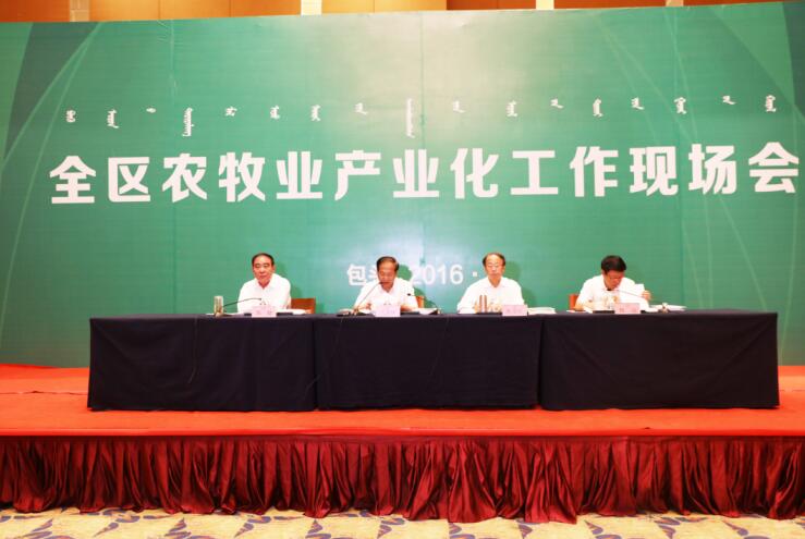 農(nóng)牧業(yè)廳廳長郭健在會上通報了我區(qū)農(nóng)牧業(yè)產(chǎn)業(yè)化發(fā)展情況。近年來,在自治區(qū)黨委、政府的正確領(lǐng)導(dǎo)下,農(nóng)牧業(yè)產(chǎn)業(yè)化工作以“建設(shè)綠色農(nóng)畜產(chǎn)品生產(chǎn)加工輸出基地”為抓手,積極推進一二三產(chǎn)融合發(fā)展,走出了一條行之有效的發(fā)展之路,農(nóng)畜產(chǎn)品加工業(yè)已成為我區(qū)繼能源、冶金之后第三大工業(yè)支柱產(chǎn)業(yè),為增加農(nóng)牧民收入,促進全區(qū)經(jīng)濟社會平穩(wěn)較快發(fā)展作出了重要貢獻。郭廳長指出,面對新形勢新任務(wù),全區(qū)農(nóng)牧業(yè)產(chǎn)業(yè)化工作要深入貫徹落實“創(chuàng)新、協(xié)調(diào)、綠色、開放、共享”五大發(fā)展理念,堅持以供給側(cè)結(jié)構(gòu)性改革為動力,著力培育領(lǐng)軍企業(yè),創(chuàng)建知名品牌,延伸產(chǎn)業(yè)鏈條,統(tǒng)籌推進農(nóng)畜產(chǎn)品初加工、精深加工和綜合利用,加強農(nóng)畜產(chǎn)品輸出平臺建設(shè),完善龍頭企業(yè)與農(nóng)牧民利益聯(lián)結(jié)機制,推進一二三產(chǎn)業(yè)融合發(fā)展。郭健廳長強調(diào)重點要在八個方面“實現(xiàn)突破”:一是在政策扶持上求突破,二是在產(chǎn)業(yè)發(fā)展上求突破,三是在培育龍頭企業(yè)上求突破,四是在培育品牌上求突破,五是在完善利益聯(lián)結(jié)機制上求突破,六是在推進“輸出”上求突破,七是在推進三產(chǎn)融合試點上求突破,八是在產(chǎn)業(yè)扶貧上求突破。依托內(nèi)蒙古天藍地綠、山清水凈、空氣清新、環(huán)境優(yōu)良的生態(tài)優(yōu)勢,努力開創(chuàng)農(nóng)牧業(yè)產(chǎn)業(yè)化經(jīng)營發(fā)展新局面,為全區(qū)經(jīng)濟社會發(fā)展作出新的更大貢獻。