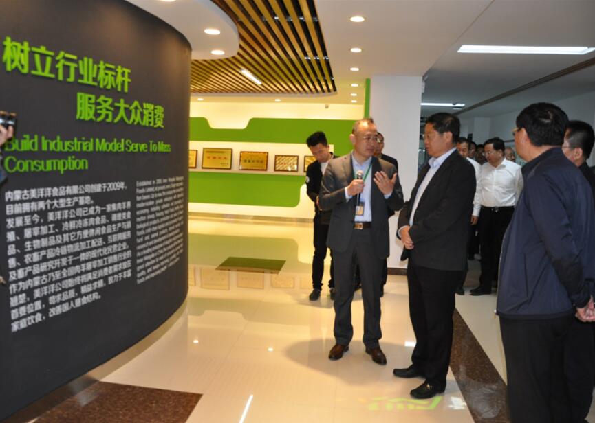 201759日下午,陽光明媚,綠意盎然,內蒙古美洋洋食品有限公司廠區(qū)內洋溢著一片欣欣向榮的景象。內蒙古自治區(qū)政府副主席王波一行,在巴彥淖爾市政府市長張曉兵等領導的陪同下,蒞臨公司參觀調研,總經理張振民熱情接待并全程陪同講解。