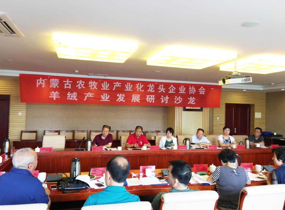 2017年727,內(nèi)蒙古農(nóng)牧業(yè)產(chǎn)業(yè)化龍頭企業(yè)協(xié)會受羊絨產(chǎn)業(yè)分會委托舉辦的內(nèi)蒙古羊絨產(chǎn)業(yè)發(fā)展研討沙龍在呼和浩特如期舉辦,內(nèi)蒙古自治區(qū)農(nóng)牧業(yè)廳產(chǎn)業(yè)化處副處長郟金梅、專家?guī)斐蓡T高級經(jīng)濟(jì)師林永亮、內(nèi)蒙古自治區(qū)農(nóng)牧業(yè)科學(xué)院首席專家趙存發(fā)、內(nèi)蒙古自治區(qū)纖維檢驗(yàn)局總工程師田文亮、內(nèi)蒙古自治區(qū)纖維檢驗(yàn)局總工程師曹渭芳、內(nèi)蒙古品牌促進(jìn)會會長劉彥辰應(yīng)邀出席會議,出席會議的還有協(xié)會副會長單位、羊絨分會會長單位-內(nèi)蒙古鄂爾多斯羊絨集團(tuán)總工程師張志、質(zhì)量管理部部長朱虹、原料分公司總經(jīng)理李豐,協(xié)會副會長單位、內(nèi)蒙古鹿王羊絨有限公司董事長鄭浩生、副總裁袁文勇,協(xié)會副會長單位、赤峰東黎絨毛制品有限公司董事長程旭東,協(xié)會副會長單位、內(nèi)蒙古北平紡織有限責(zé)任公司總裁冀北平,協(xié)會副會長單位、內(nèi)蒙古大盛業(yè)羊絨制品有限公司總經(jīng)理魯耀武等共計23人,李豐總經(jīng)理主持會議。會議主要圍繞協(xié)會團(tuán)體標(biāo)準(zhǔn)-內(nèi)蒙古白山羊絨的編制修訂意見、羔山羊絨定義及認(rèn)證管理制度編制、羊絨企業(yè)使用“內(nèi)蒙古羊絨產(chǎn)地證書”的方案、聯(lián)合出展和促進(jìn)內(nèi)蒙古羊絨產(chǎn)業(yè)發(fā)展分析五大主題進(jìn)行討論。