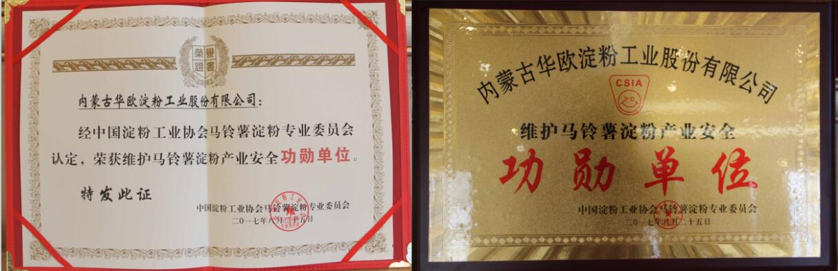 內(nèi)蒙古華歐淀粉工業(yè)股份有限公司榮獲功勛單位