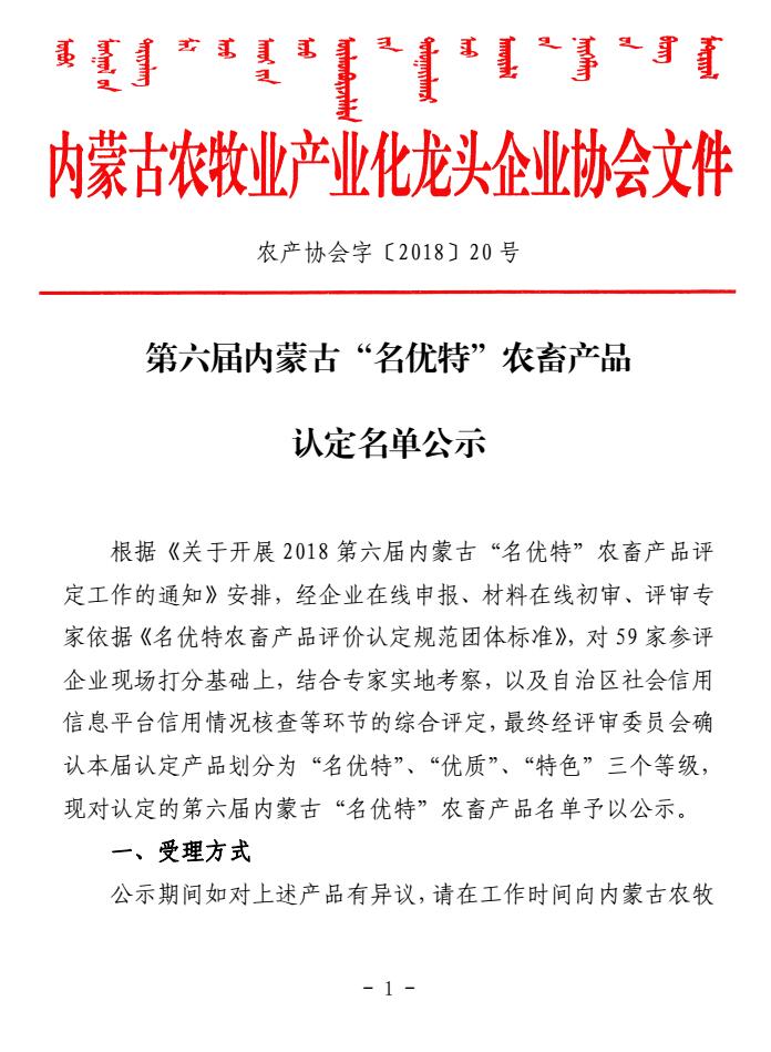 附件1:第六屆內(nèi)蒙古“名優(yōu)特”農(nóng)畜產(chǎn)品公示名單