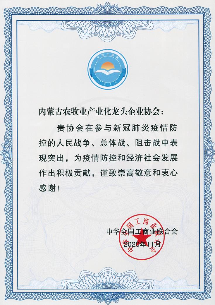在抗擊新冠肺炎疫情過(guò)程中,內(nèi)蒙古農(nóng)牧業(yè)產(chǎn)業(yè)化龍頭企業(yè)協(xié)會(huì)把疫情防控作為重大政治任務(wù),堅(jiān)決貫徹落實(shí)習(xí)近平總書記重要指示精神和黨中央、自治區(qū)決策部署,立足自身優(yōu)勢(shì),主動(dòng)擔(dān)當(dāng)作為,統(tǒng)籌做好疫情防控和復(fù)工復(fù)產(chǎn),為統(tǒng)籌推進(jìn)疫情防控和經(jīng)濟(jì)社會(huì)發(fā)展取得階段性勝利做出了重要貢獻(xiàn)。