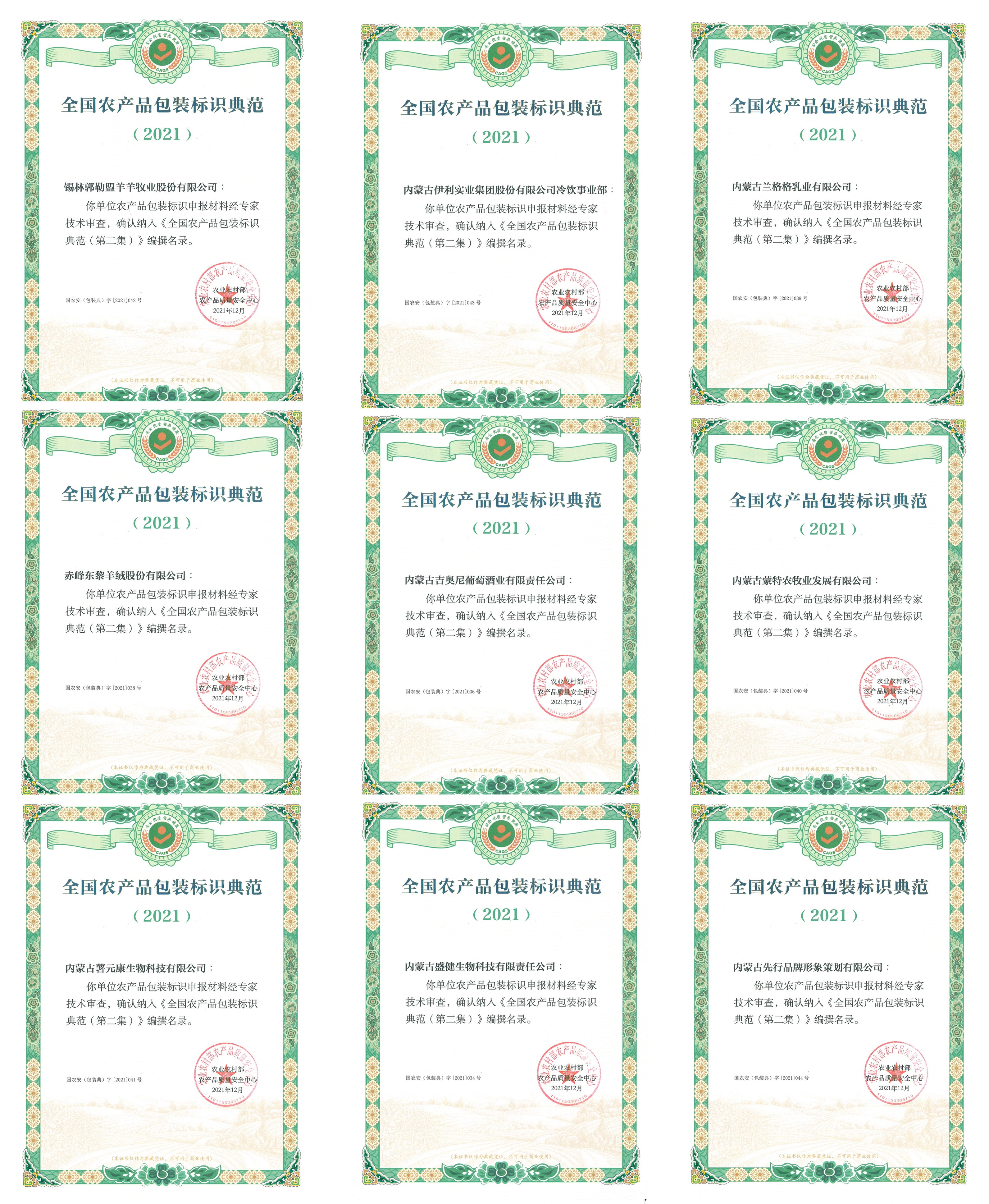為幫助企業(yè)樹立品牌意識,逐步提升我區(qū)農(nóng)畜產(chǎn)品的包裝水平和檔次,在內(nèi)蒙古自治區(qū)農(nóng)畜產(chǎn)品質(zhì)量安全中心的指導下,內(nèi)蒙古農(nóng)牧業(yè)產(chǎn)業(yè)化龍頭企業(yè)協(xié)會、內(nèi)蒙古綠色與有機食品協(xié)會已于2021年10月,順利完成“第六屆內(nèi)蒙古包裝設(shè)計競賽”的評選和表彰工作。為了更好的宣傳展示內(nèi)蒙古優(yōu)質(zhì)農(nóng)畜產(chǎn)品的品牌形象,由內(nèi)蒙古自治區(qū)農(nóng)畜產(chǎn)品質(zhì)量安全中心推薦,經(jīng)國家農(nóng)安中心組織專家評審,有9家經(jīng)協(xié)會評選的包裝設(shè)計企業(yè)成功納入《2021年全國農(nóng)產(chǎn)品包裝標識典范名錄》。據(jù)了解,入選目錄的企業(yè),經(jīng)授權(quán),可以在審定的包裝上使用其中心標識。