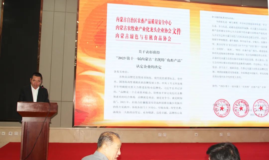 內(nèi)蒙古農(nóng)牧業(yè)產(chǎn)業(yè)化龍頭企業(yè)協(xié)會(huì)執(zhí)行秘書(shū)長(zhǎng)呼群宣讀表彰決定