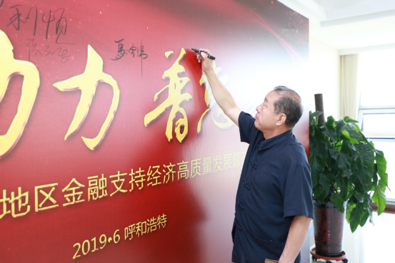 內(nèi)蒙古農(nóng)牧業(yè)產(chǎn)業(yè)化龍頭企業(yè)協(xié)會執(zhí)行會長林永亮在簽名墻簽名