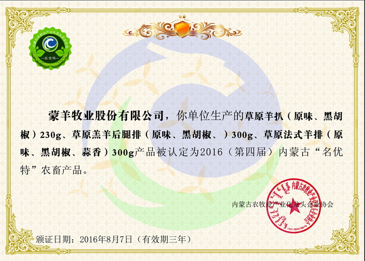 蒙羊牧業(yè)股份有限公司于2012年5月注冊成立,注冊資本3.1億元。成立至今,蒙羊牧業(yè)已布局完成了包含優(yōu)質(zhì)肉羊良種繁育、生態(tài)規(guī)?;N養(yǎng)殖、標準化生產(chǎn)深加工、全程冷鏈物流體系、全國終端渠道覆蓋在內(nèi)的綠色生態(tài)全產(chǎn)業(yè)鏈,并以規(guī)?;?、標準化、產(chǎn)業(yè)化的發(fā)展模式以及全新互聯(lián)網(wǎng)思維的整合融入,一躍成為了農(nóng)業(yè)產(chǎn)業(yè)化國家重點龍頭企業(yè)、世界肉類組織成員、自治區(qū)扶貧龍頭開發(fā)企業(yè)、中國肉類協(xié)會常務理...
