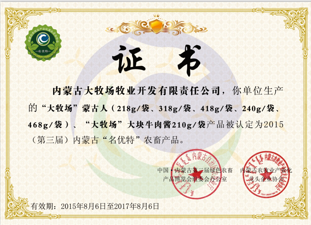內(nèi)蒙古大牧場牧業(yè)集團(tuán),從2005年創(chuàng)業(yè)至今,始終致力于開發(fā)內(nèi)蒙古大草原優(yōu)質(zhì)的牛羊資源,堅持打造基于食品安全管理閉環(huán)運行的“全產(chǎn)業(yè)鏈 全程溯源”的牛羊肉產(chǎn)業(yè)鏈,目前已實現(xiàn)從牧場養(yǎng)殖、屠宰、精加工、連鎖專賣系統(tǒng)、電子商務(wù)拓展全覆蓋,集團(tuán)化、品牌化發(fā)展。     大牧場擁有...