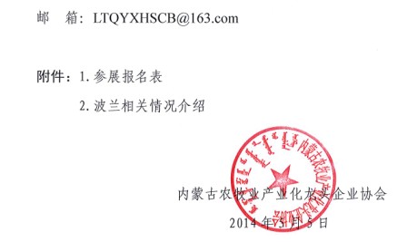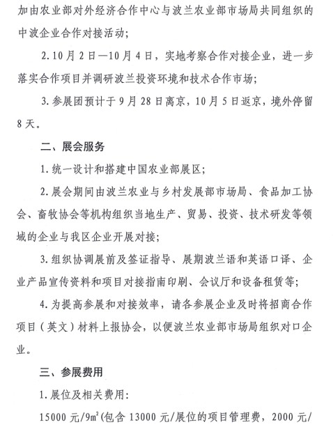 關于組織會員單位參加2014年波蘭波茲南國際食品博覽會的通知