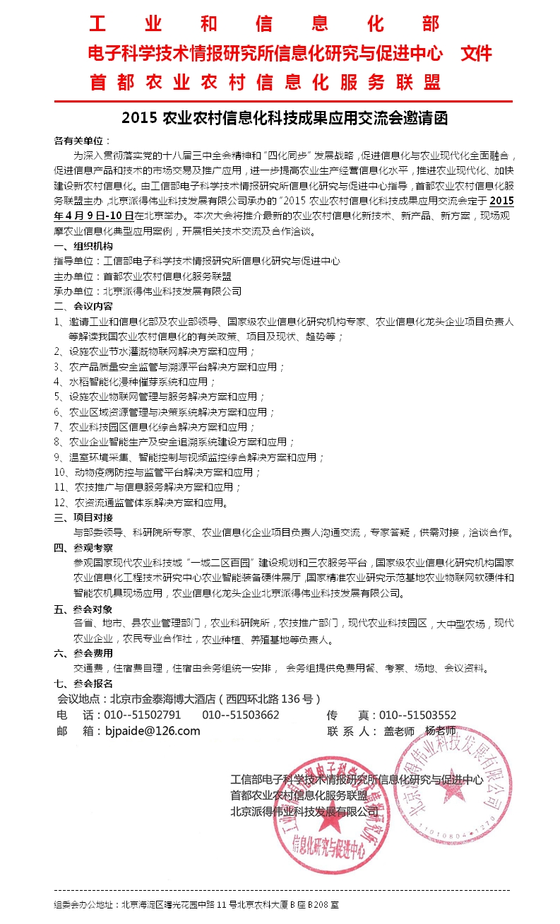 關(guān)于組織會(huì)員企業(yè)參加2015農(nóng)業(yè)農(nóng)村信息化科技成果應(yīng)用交流會(huì)的通知