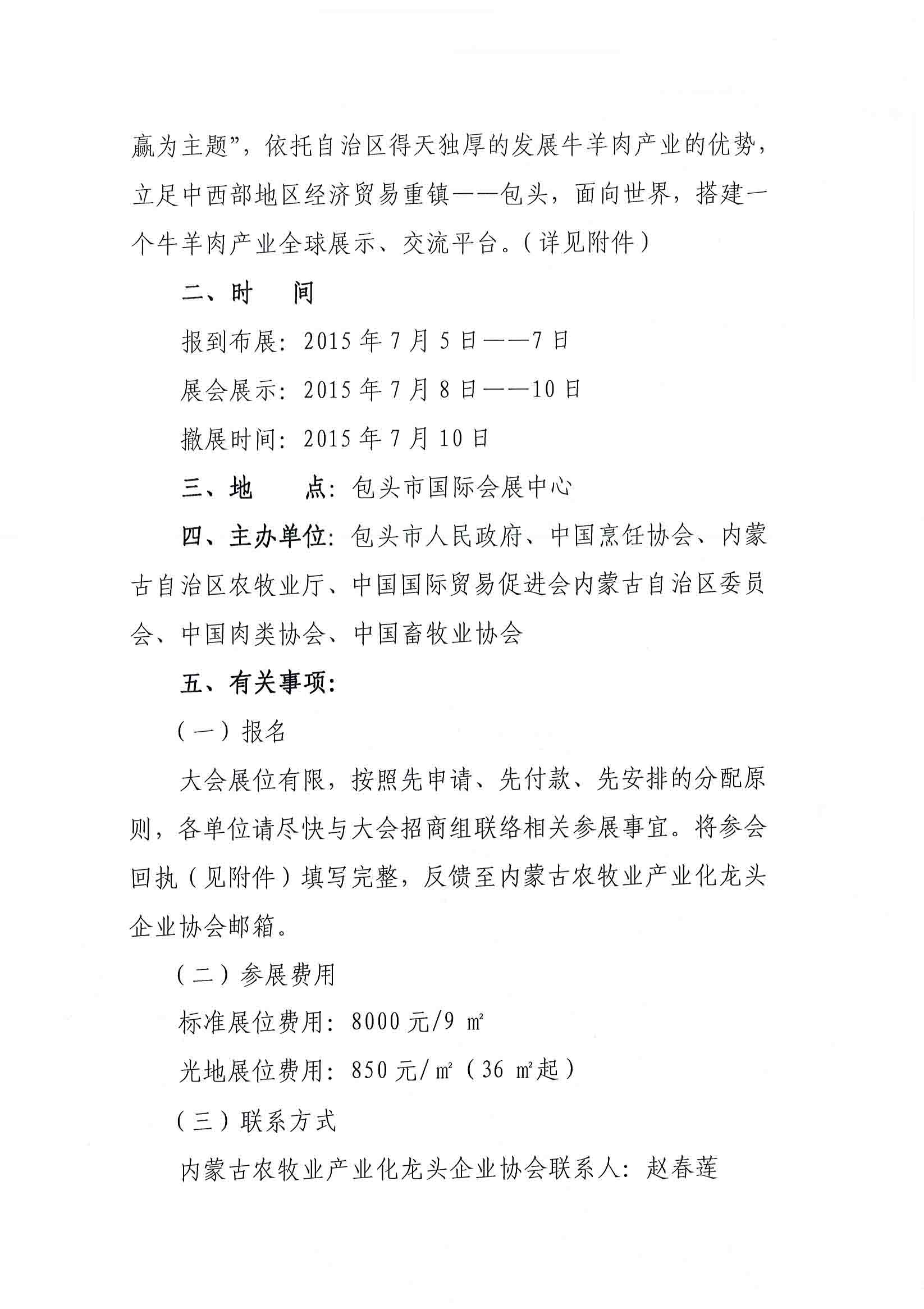 關(guān)于組織會(huì)員企業(yè)參加第二屆中國(guó)·包頭(國(guó)際)牛羊肉產(chǎn)業(yè)大會(huì)的通知