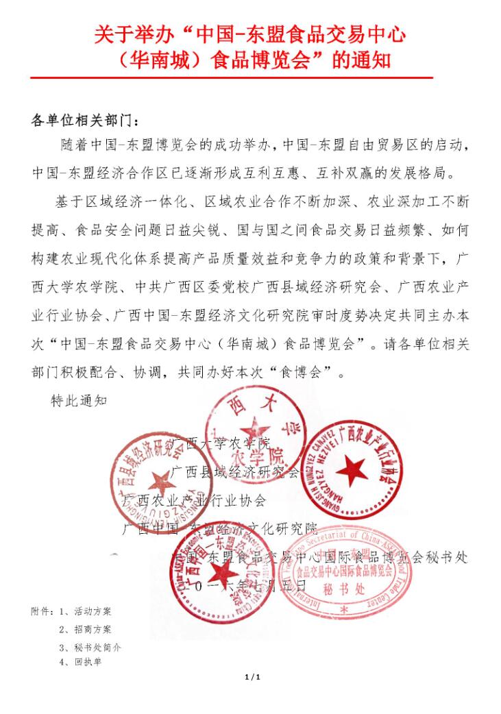 關(guān)于舉辦“中國(guó)-東盟食品交易中心(華南城)食品博覽會(huì)”的通知