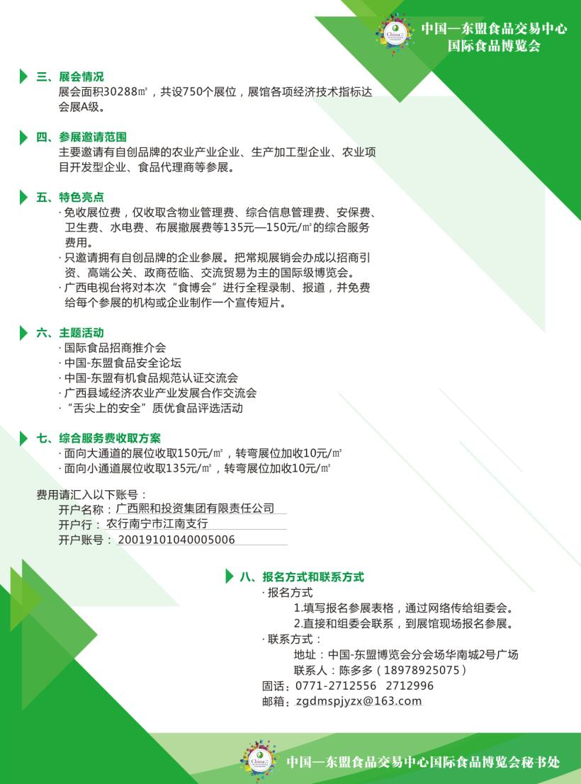 2)本次“博覽會(huì)”將同時(shí)舉辦“首屆中國(guó)-東盟食品安全論壇”和