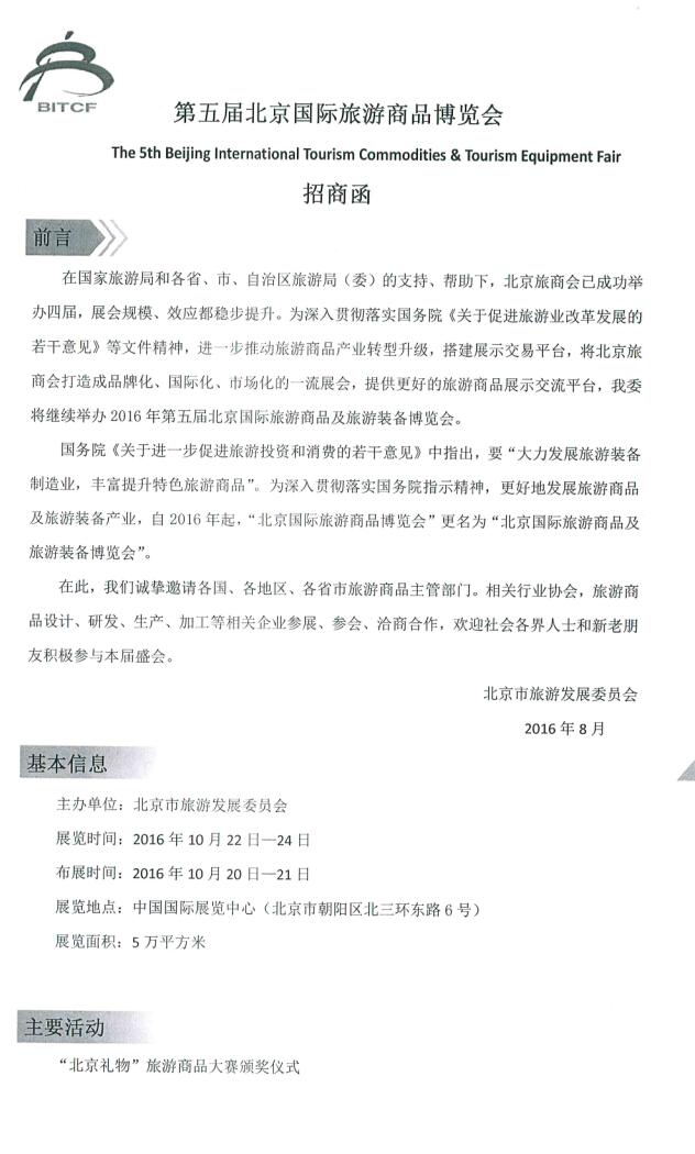 關(guān)于邀請參加第五屆北京國際旅游商品博覽會的通知
