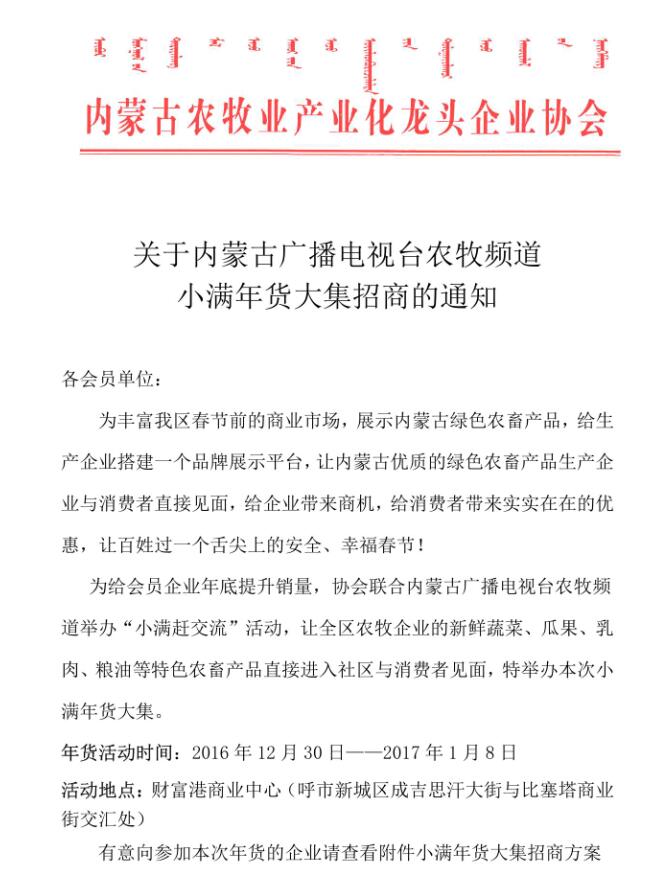 關于內蒙古廣播電視臺農牧頻道小滿年貨大集招商的通知