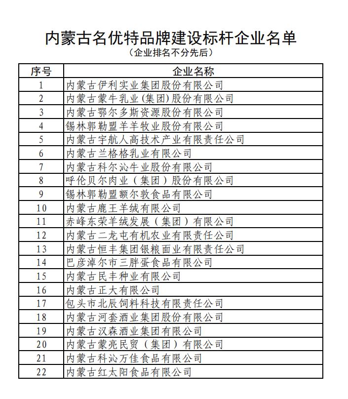 內(nèi)蒙古名優(yōu)特品牌建設(shè)標(biāo)桿企業(yè)名單公告