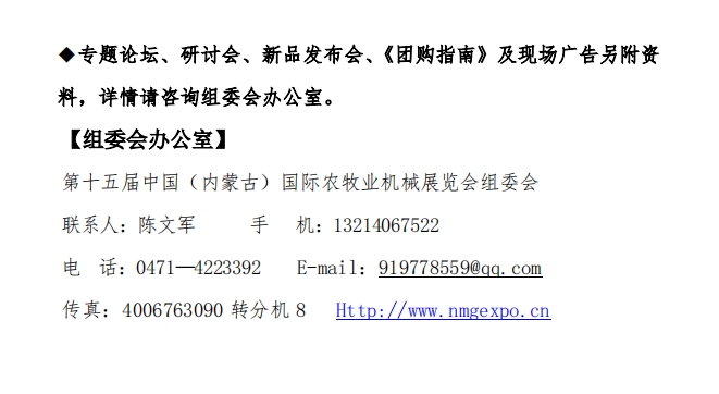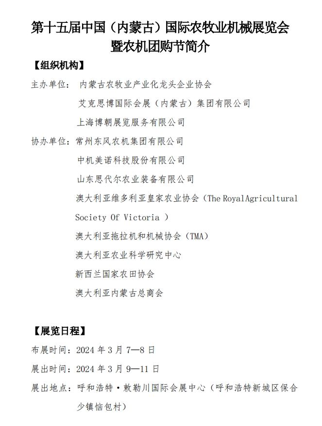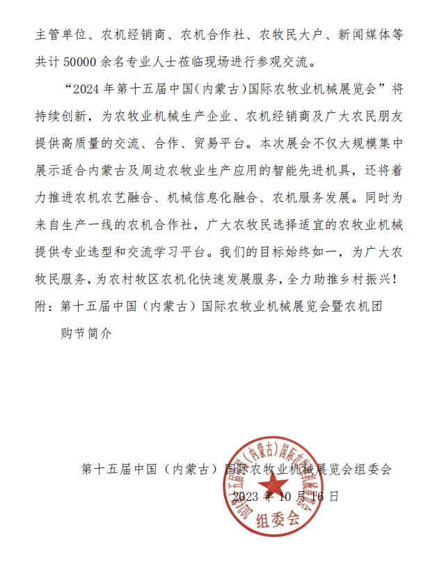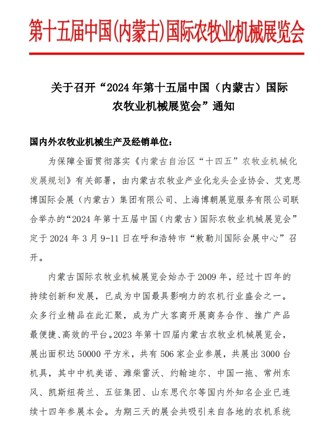 關于召開“2024年第十五屆中國(內蒙古)國際農牧業(yè)機械展覽會”通知