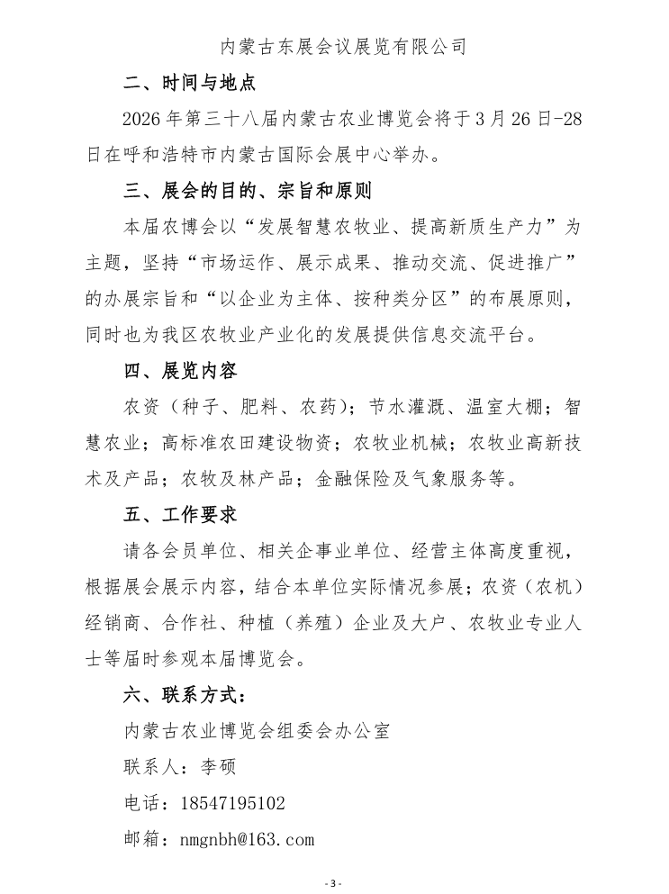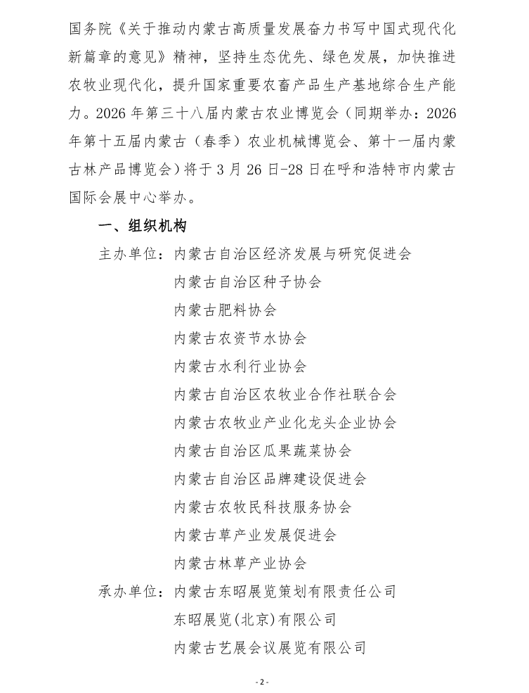 關(guān)于舉辦2026年第三十八屆內(nèi)蒙古農(nóng)業(yè)博覽會的通知
