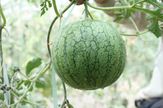 系厚皮系統(tǒng)非網(wǎng)紋類甜瓜,中早熟品種,主產于我國內蒙地區(qū)。瓜為圓球、扁圓球或檸檬形,表皮光滑有裂紋,皮深黃或桔紅色,肉脆汁多,味極甜,兼有梨、蘋果、香蕉和蜜桃等水果濃香味。河套蜜瓜瓜型美觀,色澤鮮艷,香味濃郁,甜脆可口,是生食瓜類之特佳品種。河套蜜瓜是巴彥淖爾盟黃河后套地區(qū)的著名特產。其中磴口縣所產的蜜瓜,品種純,因自然條件好而得天獨厚。暢銷北京、天津、廣州、東北等地,在香港也享有盛名。