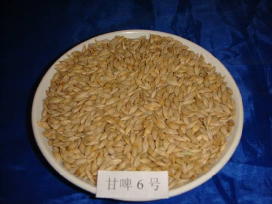 甘啤6號大麥屬二棱皮大麥,春性,生育期102天,中熟。幼苗半匍匐,莖稈彈性好,均勻株高80厘米。葉片開張角度大,冠層透光好,抽穗時株型松緊中等,穗全抽出,閉穎授粉,穗長方形。灌漿后期穗軸略有彎曲,穗層整潔,均勻穗長8.0厘米,穗莖節(jié)26.5厘米。疏穗型,單株有效分蘗2.5個,長芒,黃色鋸齒。穗粒數(shù)23粒左右,千粒重4550克,蛋白質(zhì)含量8.710.5%,選粒率(2.5毫米)8593.0%。粒色淡黃,種皮薄,粒徑大,皺紋細(xì)膩,籽粒卵形,粉質(zhì);抗倒伏,抗干熱風(fēng),抗條紋病和其它大麥病害。