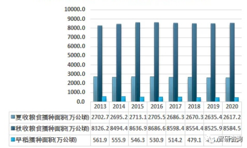 2  20132020年中國糧食種植面積分布情況